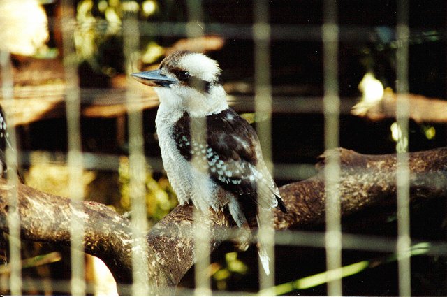 A kookaburra but I don't know if that is a gum tree he is sitting in.
