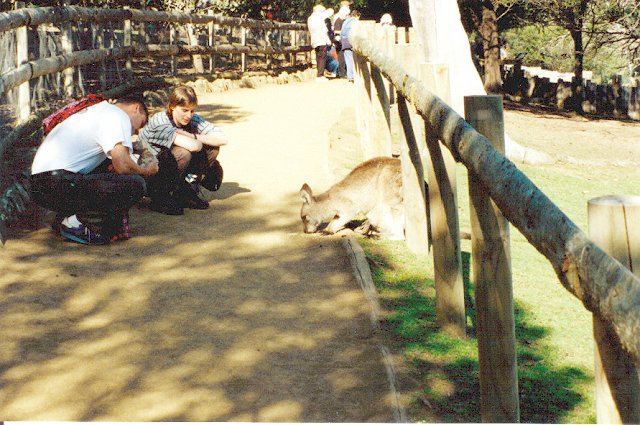A pushy kangaroo and her joey. She was more than willing to come right up to you and take the food out of your hand. She tried to take the entire bag of food I was carrying out of my hand while I fed a different kangaroo.