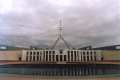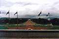 Up at about 8:30 and started walking toward the center of the city. Stopped at the Australian Capital Exhibition and went through it. There was a lot of information on the history and development of Canberra and the Australian Capital Territory. Just outside the exhibition centre there was the Captain Cook Water Jet, which was never running when I was near it, but does appear in a few pictures I took from a distance. From there I walked to the American Embassy, where they would not let me in, but I did get to sign the guest book so the FBI could check up on me. From there I walked to the Parliament House, had a bite to eat at the Queen's Terrace Cafe, then took one of the free tours of the Parliament House. My film was too slow so I was unable to take interior pictures on this tour, but I did get some from the top of the Parliament House.