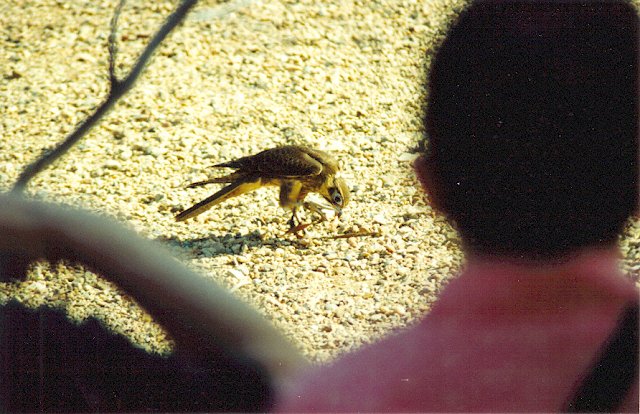 One of the smaller birds of prey. It mostly feeds on insects, stunning them and knocking them out of the air to catch them on the ground.