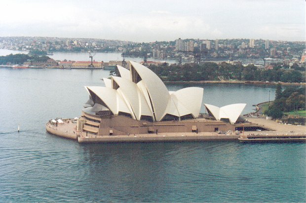 The Sydney Opera House from the top of the Pylon Lookout with a 200mm zoom lens.