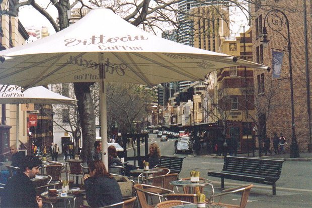 Looking south down George St. past one of the uncountable cafes found everywhere in Australia.