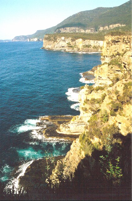 The coast outside the Tasman Arch, with the channel into it near the bottom.