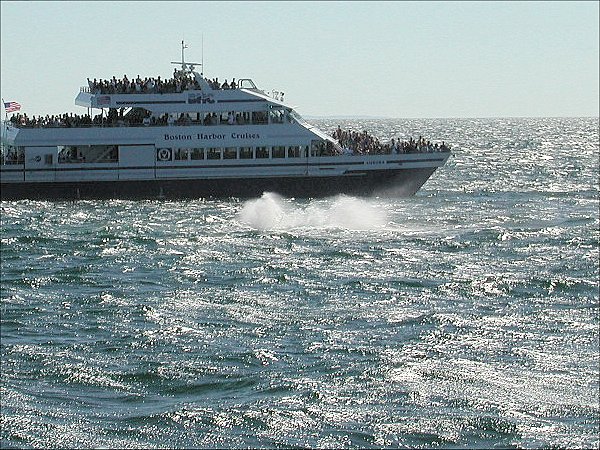 The whales are not shy about where and when they do this.